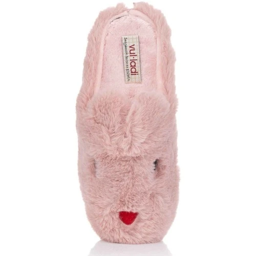 Zapatilla abierta de andar por casa para niña y mujer realizada en suave tejido de pelo con forma de conejo. Suela vulcanizada de caucho flexible y antideslizante. Fabricado en España por la marca Vul-ladi.